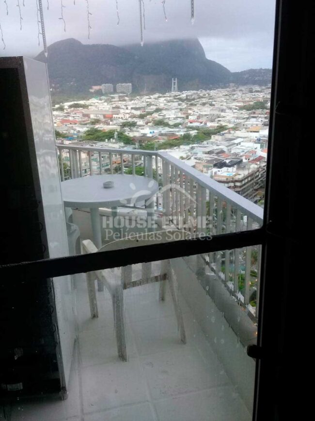 Aplicação de película de privacidade branca jateadaAntes Depois